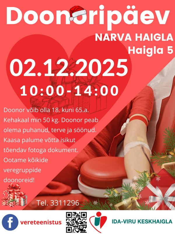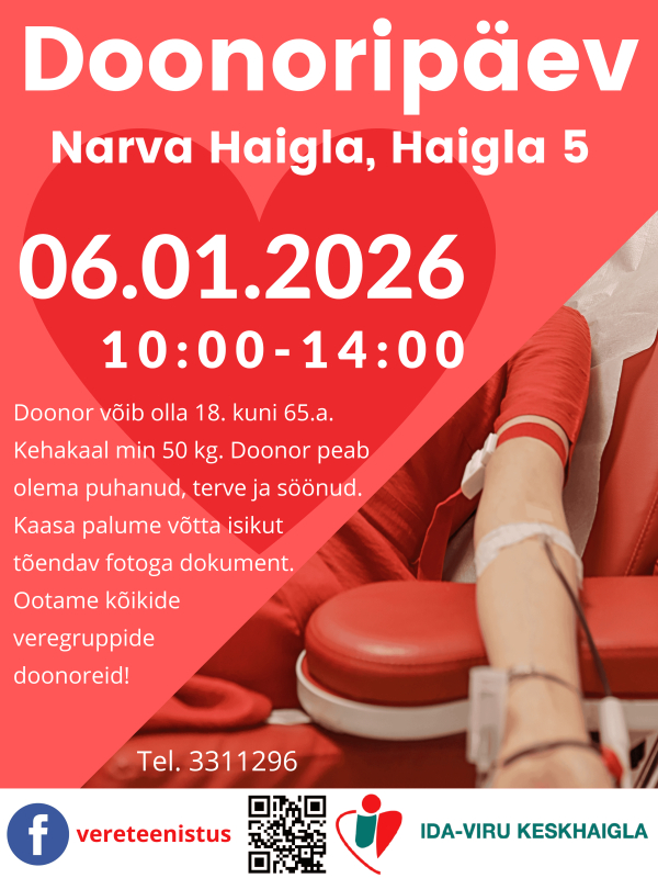Doonor võib olla 18. kuni 65.a. Kehakaal min. 50 kg. Doonor peab olema puhanud, terve ja söönud. Kaasa palume võtta isikut tõendav fotoga dokument. Ootame kõikide veregruppide doonoreid!