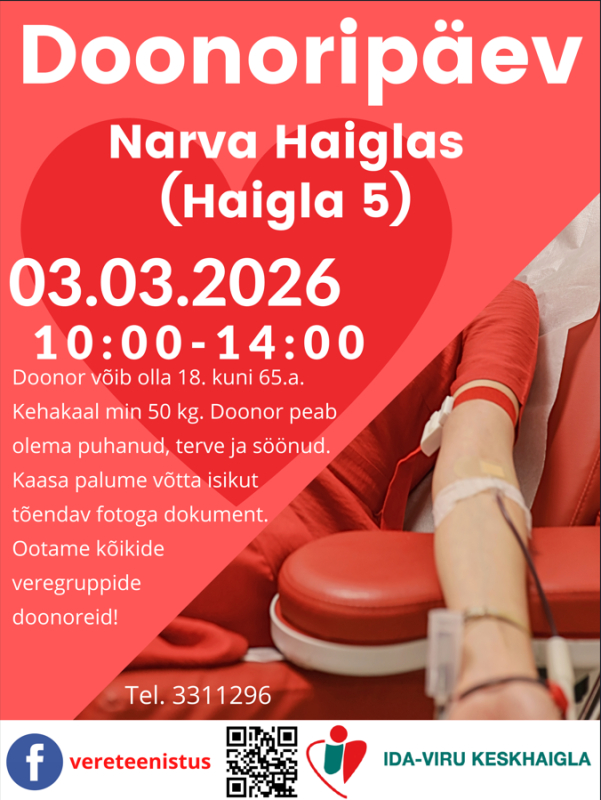 Doonor võib olla 18. kuni 65.a. Kehakaal min. 50 kg. Doonor peab olema puhanud, terve ja söönud. Kaasa palume võtta isikut tõendav fotoga dokument. Ootame kõikide veregruppide doonoreid!