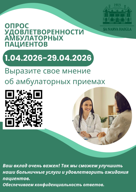 С 1 по 29 апреля в Нарвской больнице проходит опрос пациентов об удовлетворённости амбулаторными приёмами.