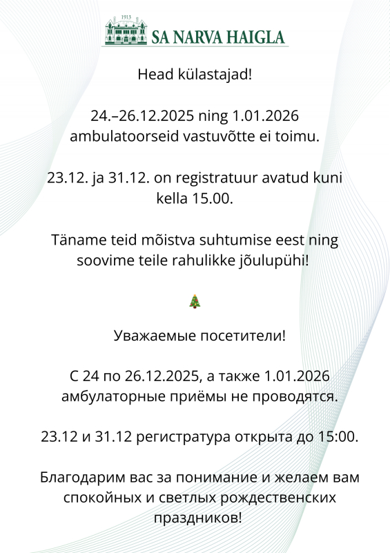 Haigla 1, Пн-Пт: 7:30 - 18:00